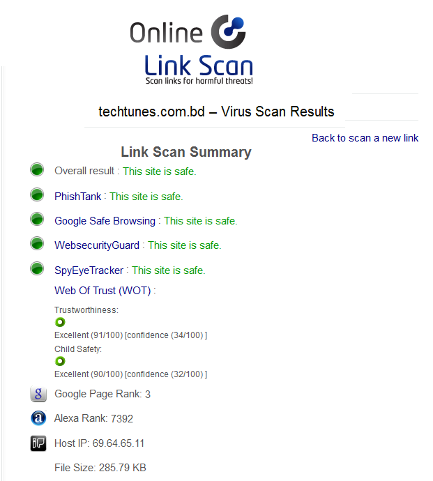 আর অন্য দিকে Online Link scan রিপোর্ট আমদের প্রাণ প্রিয় টেকটিউনস নাকি সেফ
