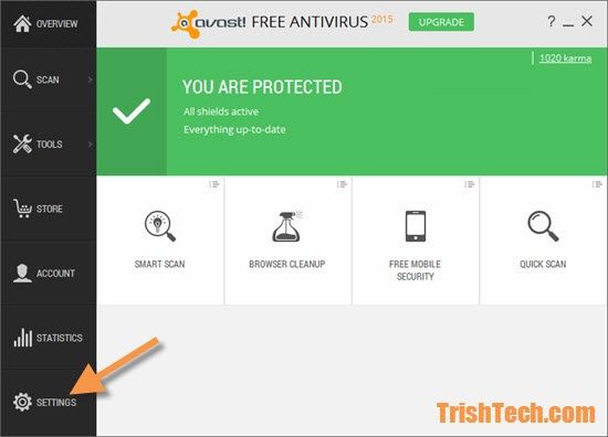 এভাষ্ট এন্টিভাইরাস রান করুন। নিচের চিত্রের মত বক্স আসবে সেখান থেকে Settings এ ক্লিক করুন।
