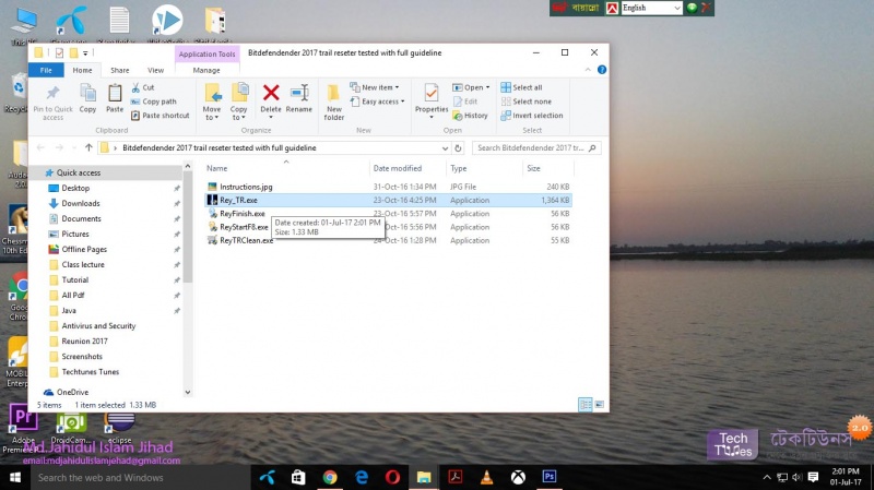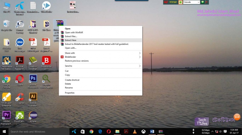 আপনার এন্টিভাইরাস ডিজেবল হয়ে গেল আপনি এবার ট্রিয়েল রিসেটার এক্সেক্ট করতে পারেন।কিভাবে ট্রিয়েল রিসেট করবেন সেটার পদ্ধতি সেখানে দেয়া আছে instruction.jpg নামের একটা ফাইলে।তবুও আপনাদের সুবির্ধাথে আমি এখানে দিলাম।প্রথমে সবগুলো ফাইল ডেক্সটপে এক্সট্রাক করুন।