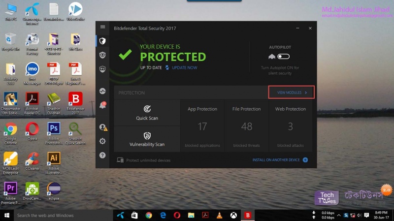যেমন আমি এখানে Bitdefender Total Security 2017 সিলেক্ট করলাম।ডাওনলোড করে ইনস্টলকরে নিন।ইন্টরনেট কানেকশন লাগবে।ইনস্টল করার সময় ট্রিয়েল সিলেক্ট করবেন।এভাবে ডাওনলোড করার পর আপনাকে ৩০ দিনের ট্রিয়েল দিবে।যাতে করে আপনি ৩০ দিন পর্যন্ত এটি চালাতে পারবেন। তো আমরা কি করব এই ট্রিয়েলটাকে বার বার ইউজ করব মেয়াদ শেষ হওয়ার আগে আমরা ট্রিয়েল রিসেটার দিয়ে ট্রিয়েল ভার্সন রিসেট করব। সেজন্য লিংকে দেয়া ফাইলটা আগে ডাওনলোড করে নিন।এখানে।