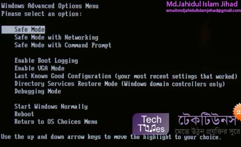 তো কনসুলে দেখতে পারবের Safe Mode লেখা আসছে।সেখান থেকে আপনি কি-বোর্ডের আ্যরো কি এর সাহায্যে Safe Mode এ গিয়ে এন্টার প্রেস করুন।