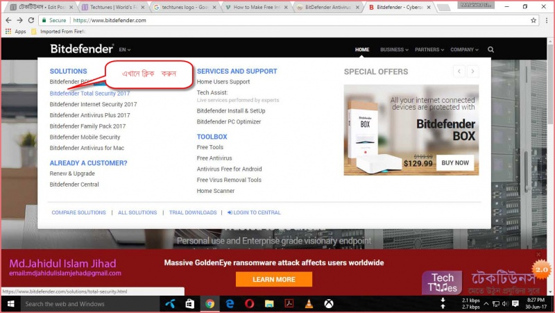 যদি রিকোয়ারমেন্টগুলো আপনার চাহিদার সাথে মেলে তাহলে আপনি সামনের স্টেপে এগোন। প্রথমে Bitdefender এর অফিসিয়াল ওয়েব সাইট থেকে ২০১৭ সালেরিএন্টিভাইরাস আপনার পছন্দ মতো পছন্দ মতো ডাওনলোড করে নিন।