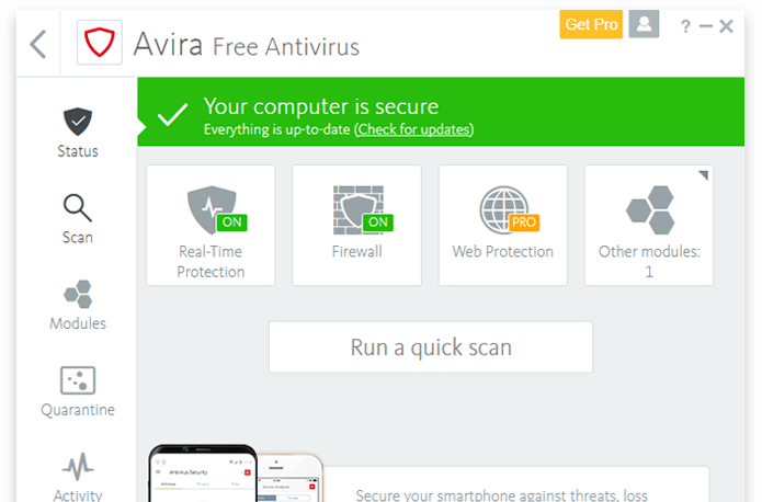 এন্টিভাইরাস জগতের গডফাদার বলতে পারেন এই অ্যাভিরা এন্টিভাইরাসের কোম্পানিকে। কারণ সেই ১৯৮৬ সালে প্রতিষ্ঠিত হবার পর থেকে এখন পর্যন্ত কোম্পানিটি আমাদেরকে ভাইরাসের হাত থেকে সুরক্ষিত করে আসছে। তবে কিছুদিন হলো অ্যাভিরাও অন্যদের মতো ফ্রি এন্টিভাইরাস বাজারে ছেড়েছে আর এটার প্রিমিয়াম সংষ্করণের মতোই এটাও জনপ্রিয় হয়ে গিয়েছে। কারণ এন্টিভাইরাসটির ল্যাব স্কোর বেশ সন্তোষজনক এবং ইন্সটল করার সময় বিভিন্ন অনান্য অ্যাভিরা প্রোডাক্ট ফ্রিতে ইন্সটল করার সুযোগও রয়েছে। তবে এন্টিভাইরাসটির দুর্বল দিক হলো এটির অন-ডিমান্ড স্ক্যান এবং রিয়েল টাইম প্রটেক্টশন ফিচারটি বেশ স্লোতে কাজ করেছে আমার পিসিতে।