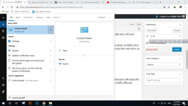 1. Cortana Searchbar যেয়ে Control Panel লিখি।
