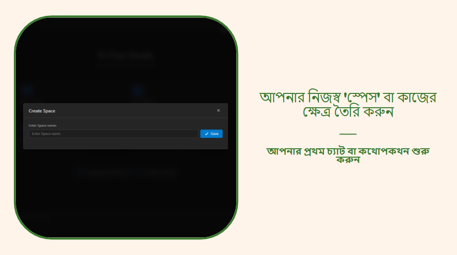 Chat শুরু করা: সেই Space-এর ভেতরে গিয়ে তোমার প্রথম Chat শুরু করো। ব্যস! এখন তুমি রোবট বন্ধুর সাথে কথা বলতে পারবে।