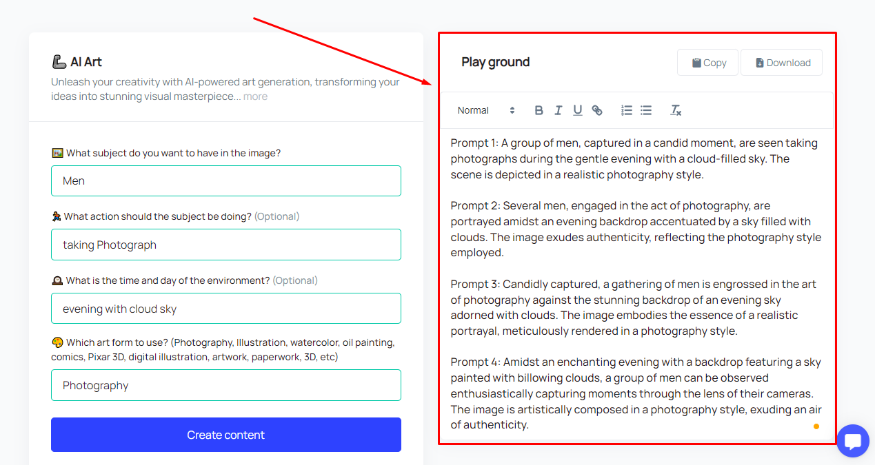 আপনাকে তেমন কিছুই করতে হবে না। কি ধরনের ইমেজ চান সেই ধারণা দিলেই আপনার জন্য Prompt তৈরি হয়ে যাবে।