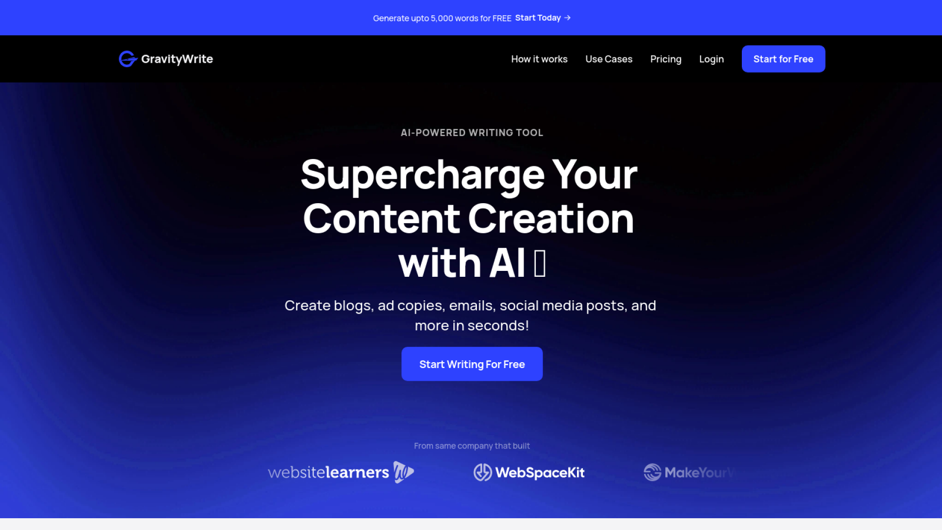 GravityWrite একটি আর্টিফিশিয়াল ইন্টেলিজেন্স ভিত্তিক রাইটিং টুল। এটি দিয়ে আপনি ব্লগ, ইমেইল, এড এমনকি সোশ্যাল মিডিয়া Post ও লিখতে পারেন। GravityWrite এ রয়েছে Prompt সঠিক পাওয়ারও ব্যবস্থা। GravityWrite এর AI Art নামের টুলটি দিয়ে আপনি ইমেজ জেনারেট করার দারুণ সব Prompt ক্রিয়েট করতে পারবেন।