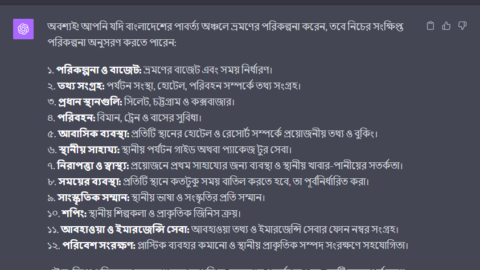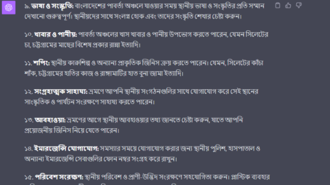 - ধাপে ধাপে ব্যাখ্যা কর (Explain step-by-step): চ্যটজিপিটি হতে প্রাপ্ত রেসপন্স যদি ব্যবহারকারীর বুঝতে সমস্যা হয় এবং তিনি যদি কোন বিষয় বিস্তৃত জানতে চান তবে ‘Explain step-by-step’ বা ‘In simple Term’ বা ‘Clarify’ কমান্ড ব্যবহার করতে পারেন। এতে চ্যাটজিপিটি বিষয়বস্তুর বিস্তৃত ব্যাখ্যা ধাপে ধাপে বা ভেঙ্গে ভেঙ্গে করে থাকে।
