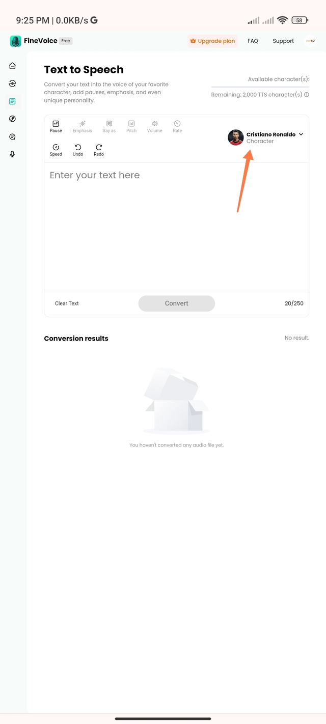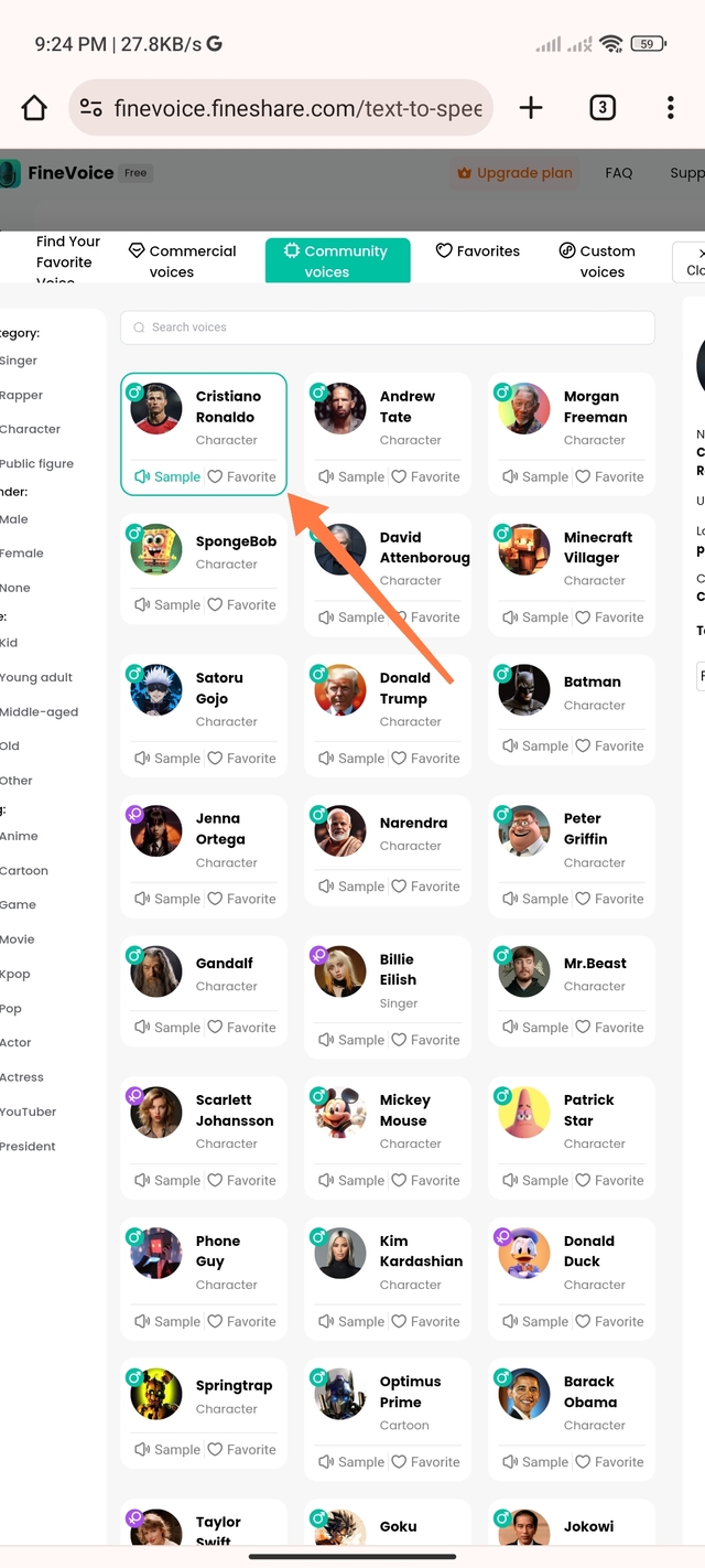 ৩. বন্ধুরা আপনারা এখানে একটি জিনিস খেয়াল করুন। প্রতিটি ক্যারেক্টার এর উপরে এর প্রাইজ ৫০০০ কয়েনে দেওয়া আছে। মানে আপনাকে একটি ক্যারেক্টার যার কণ্ঠে আপনাকে ভয়েস কনভার্ট করে দিবে, সেই একটি ক্যারেক্টার কিনতে আপনাকে সর্বমোট ৫০০০ কয়েন খরচ দিতে হবে। তবে এখানে চিন্তার কোনো কারণ নেই, আপনি এখানে অ্যাকাউন্ট করার সাথে সাথে মোট ১০০০০ কয়েন ফ্রিতেই পেয়ে যাবেন। যা দ্বারা আপনি শুরুতেই ভয়েস কনভার্ট করার জন্য ২ টি ক্যারেক্টার কিনতে পারবেন।