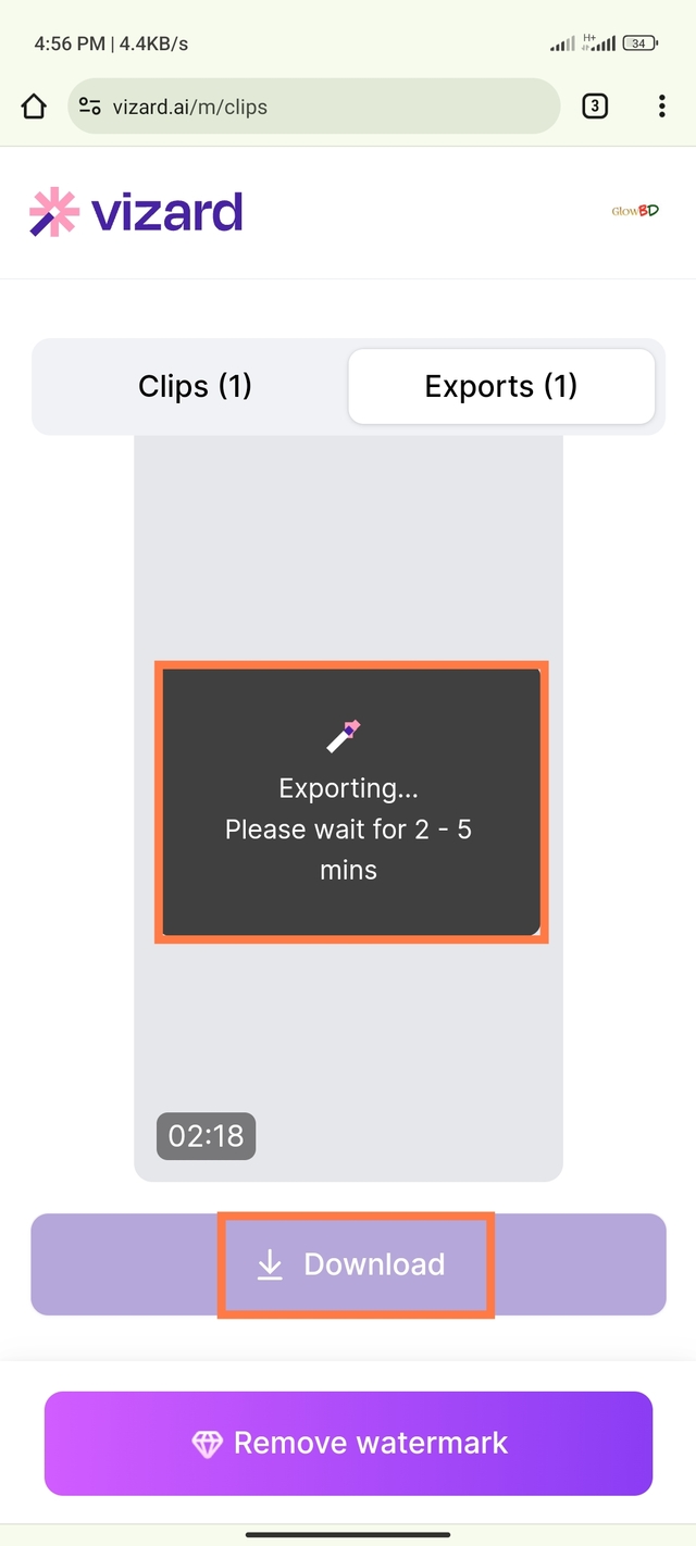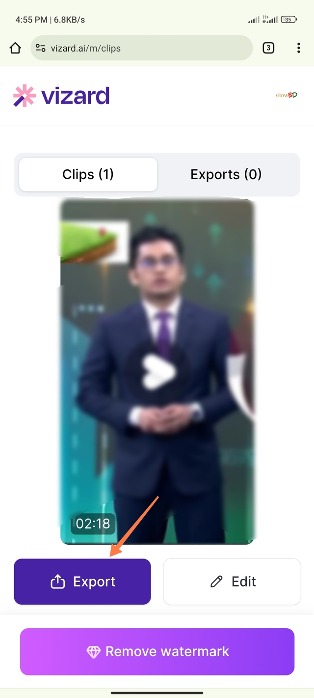 ৮. কিছুক্ষণ অপেক্ষা করার পর, দেখুন আমাদের ভিডিওটি শর্ট ভিডিওতে রুপান্তর হয়েছে। আপনি আপনার বানানো শর্ট ভিডিওটি ডাউনলোড করার জন্য Export অপশনে ক্লিক করুন।