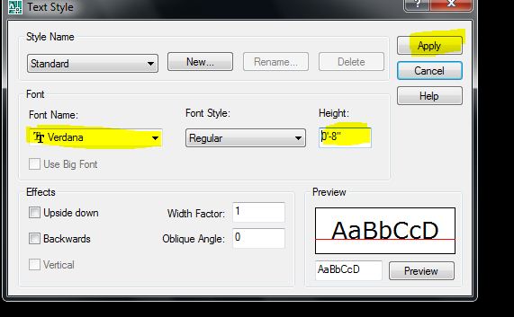 font name verdana select করি text height 8" দেই। এরপর apply তে click করি।