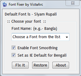 আমাদের প্রায়ই অনেকের বাংলা ফন্টে সমস্যা দেখা দেয়। কারও ফন্টের সাইজ একদম ছোট হয়ে যায়, কারও লেখাই দেখা যায় না। এই ধরনের সমস্যার ক্ষেত্রে আপনি ছোট্ট একটি পোর্টেবল সফটওয়্যার ব্যাবহার করেই তার সমাধান করতে পারবেন। সফটওয়্যারটির নাম Font Fixer.সাইজ মাত্র 709 KB.