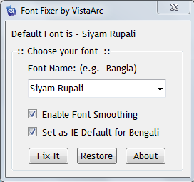 বিভিন্ন ধরনের বাংলা ফন্ট থাকে। আমার কাছে Siyam Rupali ই Best. এরপর Fix It এ ক্লিক করুন।