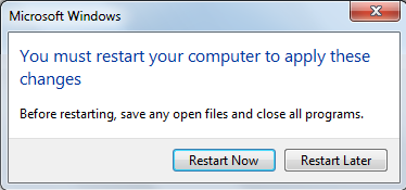 এরপর এই ডায়ালগ বক্সটি আসবে। Restart Now এ ক্লিক করুন।