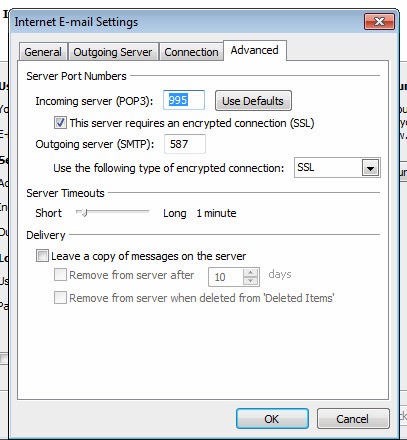 POP3 Server (Incoming Messages) | pop.ntlworld.com | SSL | 995 |