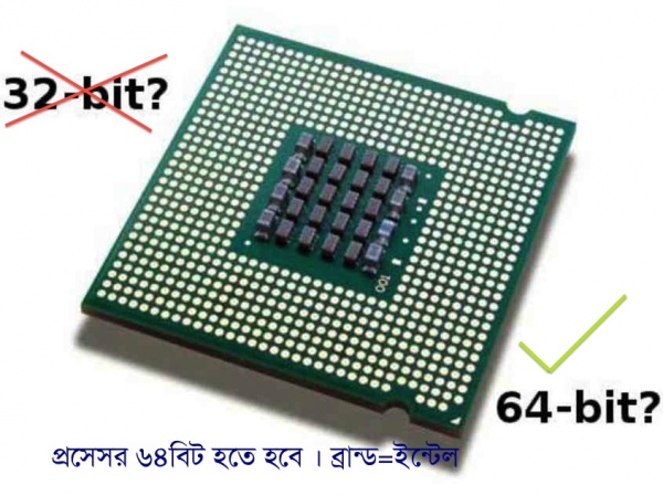 ৫। প্রসেসর ৬৪ বিট InTel (৩২বিট উপযুক্ত নয়) ।