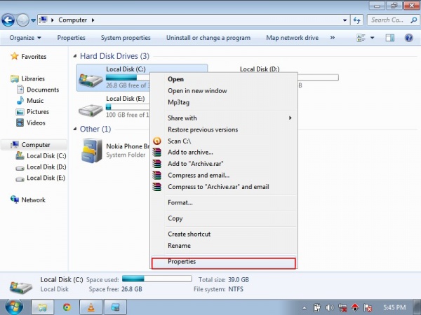 1st Step- আপনার যে Disk clean করবেন তার উপর রাইট বাটন ক্লিক করে Propertise ক্লিক করুন। যেমন আমি Local Disk-C এর উপর ক্লিক করে Propertiese এ ক্লিক করলাম।