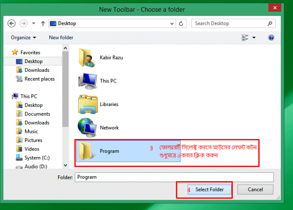 উইন্ডো থেকে আপনার কাঙ্খিত ফোল্ডারটি সিলেক্ট করুন।