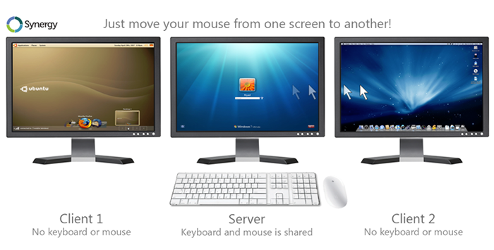 স্বাভাবিকভাবে আমরা যখন কোন কম্পিউটারের মাউসকে ডানদিক, বামদিক কিংবা যেকোন দিকে একেবারে শেষ প্রান্তে নিয়ে আসি তখন একটা জায়গায় গিয়ে মাউস পয়েন্টারটি থেমে যায়। অর্থাৎ মাউস পয়েন্টারটি মনিটরের সীমা অতিক্রম করে যেতে পারেনা। কিন্তু আপনি যদি আপনার সার্ভার পিসির দুইপাশে দুইটা ক্লায়েন্ট পিসি রেখে তাদেরকে Synergy দিয়ে সংযুক্ত করেন তাহলে তিনটি মনিটর মাউস পয়েন্টারের জন্য একক ক্ষেত্র হিসাবে কাজ করবে। আমি আগেই বলেছি যদি কম্পিউটারগুলো একেকটা আলাদা আলাদা অপারেটিং সিস্টেমের হয় তবুও একই কাজ করবে। এখন আপনি যদি একটি কম্পিউটারের ক্লিপবোর্ডের কোন ডাটাকে অপর কম্পিউটারে পেস্ট করতে চান তাহলে মাউস পয়েন্টারটেকে শুধু সরিয়ে উক্ত কম্পিউটার স্ক্রিনে নিয়ে গিয়ে পেস্ট করলেই কাজ হয়ে যাবে।