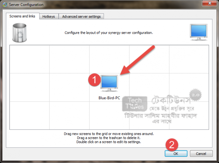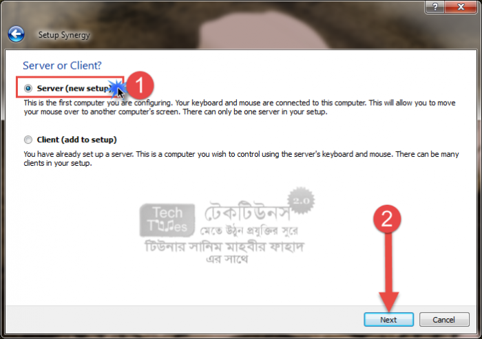 যে কম্পিউটারে কিবোর্ড এবং মাউজ সংযুক্ত থাকবে সেই কম্পিউটারকে আমরা সার্ভার হিসাবে কনফিগার করে নিবো। আপনি চাইলে যেকোন সময় যেকোন পিসিকে সার্ভার বা ক্লায়েন্ট হিসাবে পরিবর্তন করতে পারবেন। যাহোক, চলুন ধাপে ধাপে শিখে নেই কিভাবে পিসিকে সার্ভার হিসাবে ব্যবহার করবো। আমি নিজে যেহেতু উইন্ডোজ ব্যবহার করি সেহেতু উইন্ডোজের উদাহরণ দিয়েই দেখিয়ে দিচ্ছি। আপনারা অন্য কিছু ব্যবহার করলে একইভাবে কাজটি করতে পারেন।