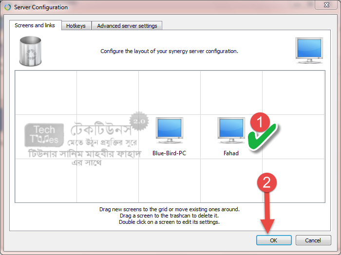 এখানে আপনাকে দেখে নিতে হবে যে, কোন কম্পিউটারে কিবোর্ড এবং মাউস ফিজিক্যালি সংযুক্ত আছে? যে কম্পিউটারে কিবোর্ড এবং মাউস সংযুক্ত আছে সেই কম্পিউটারকে আমরা বলবো সার্ভার। এখন সার্ভারের কিবোর্ড এবং মাউস ব্যবহার করে আমরা যে কম্পিউটারগুলো নিয়ন্ত্রন করবো তাদেরকে বলা হয় ক্লায়েন্ট কম্পিউটার। এখন অনেকের মনে প্রশ্ন জাগতে পারে যে কী হয় সার্ভারের সাথে ক্লায়েন্ট পিসিকে সংযু্ক্ত করলে? নিচে এর উত্তর খুঁজে পাওয়া যায় কিনা একবার দেখা যাক। তবে তার আগে চলুন ১মিনিটের এই ভিডিওটি এক নজরে দেখে নেই।