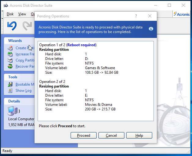 এখন Proceed বাটনে ক্লিক করার সাথে সাথে অটোমেটিক বাকী কাজ শেষ হয়ে রিস্টার্ট নিবে।রিস্টার্ট শেষে ড্রাইভ স্পেস চেক করলে দেখবেন যে ড্রাইভের স্পেস বাড়িয়েছিলেন তা আপনার চাহিদা মত বেড়েছে।