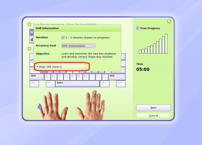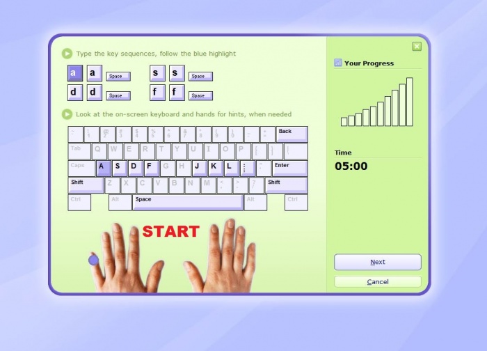 ৭.খেয়াল করুন আপনার a অ্যালফাবেট টি নিল হয়ে আছে তার মানে আপনাকে a ক্লিক করতে হবে, এরকম ভাবে যেটা যেটা নিল হবে সেটা ক্লিক করবেন। পাশে দেখেন টাইম দেখাচ্ছে, আপনার সময় ৫ মিনিট, তারপর টাইম এর উপর দেখুন সিঁড়ি এর মত দেখাচ্ছে। আপনাকে ৫মিনিট এর ভিতরে টাইপ করে সিরি পুরন করতে হবে। যখন ৫মিনিট শেষ হয়ে যাবে তখন দেখতে পারবেন আপনার স্পীড কত হল, তারপর কয়টাই ভুল করছেন। এবাবে লেসন ১২ পর্যন্ত শেষ করতে পারলে আপনার হাত পুরা চালু।শুধু তাই নয় এখানে আপনি গেম এর মাধ্যমে হাত চালু করতে পারবেন।