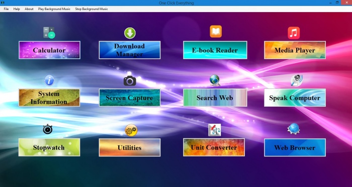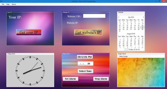 ১০. ইউটিলিটিসঃ এখানে আপনি আপনার আইপি (ইন্টারনেট প্রোটোকল) অ্যাড্রেস দেখতে পারবেন। যে কোন ওয়েবসাইতের আইপি দেখতে পারবেন। ক্যালেন্ডারের মাধ্যমে দিন-তারিখ দেখতে পারবেন। অ্যানালগ ক্লক আপনাকে দেয়াল ঘড়ির মত টাইম দেখাবে। অ্যালার্ম ক্লকের মাধ্যমে আপনি আপনার সিলেক্ট করে দাওয়া একটি মিউজিক ফাইল নির্দিষ্ট সময়ে বাজাতে পারবেন। ফলে আপনার কম্পিউটার অ্যালার্ম ক্লকের কাজ করবে। ইমেজ ভিউয়ারের মাধ্যমে আপনি সিলেক্ট করা যে কোন ইমেজ দেখতে পারবেন।