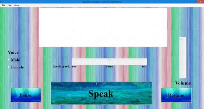 ৮. স্পিক কম্পিউটারঃ আপনার কম্পিউটার এখন কথা বলবে। আপনি যা বলাতে চান সেটা টাইপ করে স্পিক ক্লিক করলেই কম্পিউটার সেটা পড়ে শুনাবে। আপনি স্লো অথবা ফাস্ট কথা বলাতে পারবেন। ভলিউম বাড়াতে কমাতে পারবেন। এছাড়া মেইল/ফিমেইল এই দুই ভয়েসে কথা শুনতে পারবেন। এটা কম্পিউটারের উপর ডিপেন্ড করে। অনেক কম্পিউটারে মাত্র একটি ভয়েস থাকে। সেক্ষেত্রে মেইল/ফিমেইল দুই অপশনেই একি ভয়েস শুনাবে।