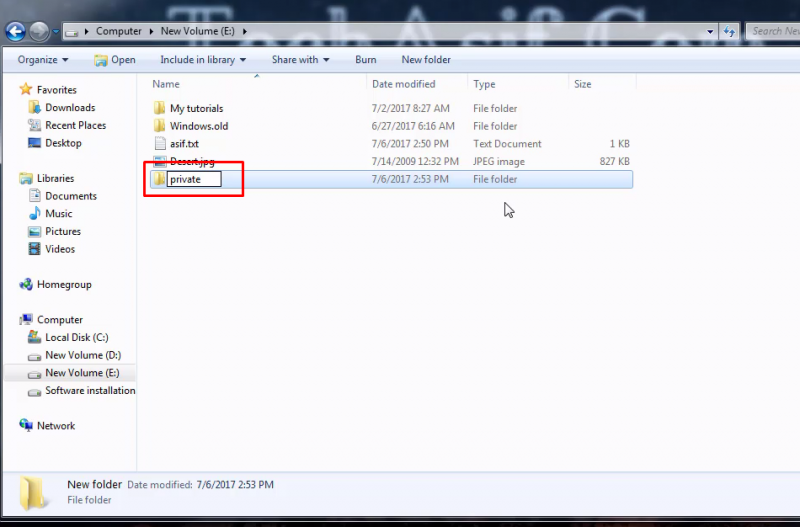 আপনি যে অডিও বা ভিডিও বা যে ফাইল লুকিইয়ে রাখতে চান সেই ফাইল কপি বা পেস্ট করেন এই private নামের ফোল্ডার এ। যেকোন ফাইল ই হাইড করা যাবে।