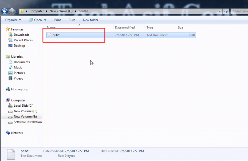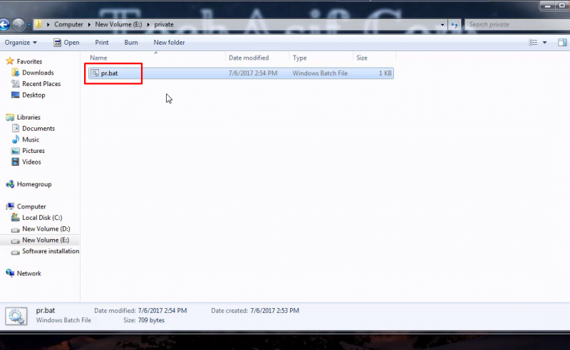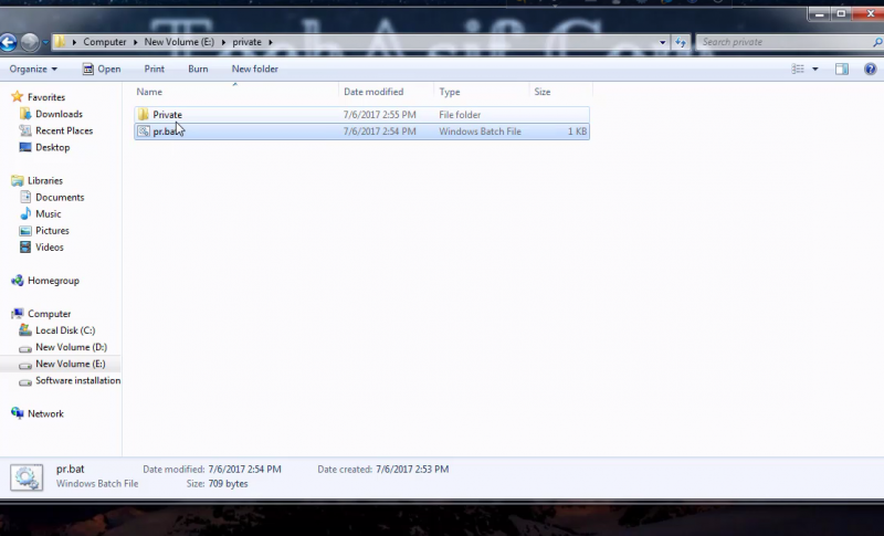 .bat ফাইল এ ডাবল ক্লিক করি তাহলে নিচের মত একটি ফোল্ডার তৈরি হবে private নামে।