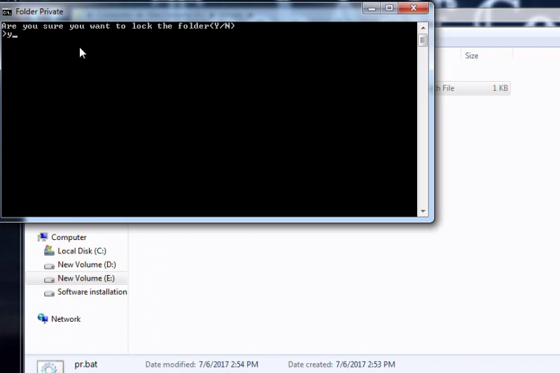 আপনি আপনার .bat ফাইল্টা ডাবল ক্লিক করুন তাহলে নিছের মত আসবে আপনি y লেখে এন্টার প্রেস করুন।বেচ আপনার ফাইল হাইড হয়ে গেছে।
