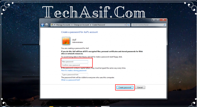 নিউ পাসওয়ার্ড এবং কনফার্ম পাসওয়ার্ড দিয়ে create password ক্লিক করুন।