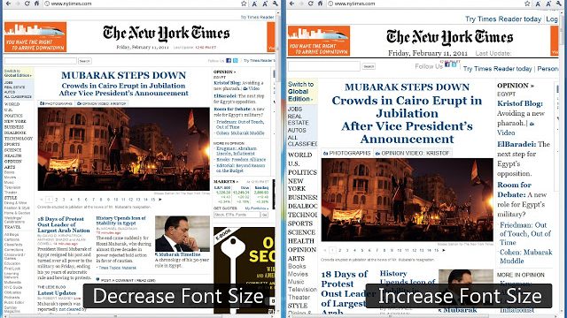 ওয়েব পৃষ্ঠার ফন্টের আকারটি দ্রুত বৃদ্ধি এবং হ্রাস করুন : ইন্টারনেটে যে কোনও ওয়েব পৃষ্ঠায় দেখার সময়, আপনি এমন ছোট্ট পাঠ্যটি দেখতে পারা যা পড়া বা পড়া অসম্ভব বা অসম্ভব। হরফের যদি কোনও সেট আকার না থাকে তবে আপনি নীচের কম্পিউটারের শর্টকাট ব্যবহার করে ফন্টের আকার বাড়াতে বা হ্রাস করতে পারেন। কীবোর্ড শর্টকাট Ctrl কী টি ধরে রাখুন এবং ফন্টের আকার বাড়াতে + - টিপুন এবং ফন্টের আকার হ্রাস করতে। নিয়ন্ত্রণ কী ধরে রাখার সময় এই কীগুলির যে কোনওটি টিপলে হ'ল ফন্টটি সর্বাধিক না পৌঁছানো অবধি বৃদ্ধি বা হ্রাস করতে থাকবে।
