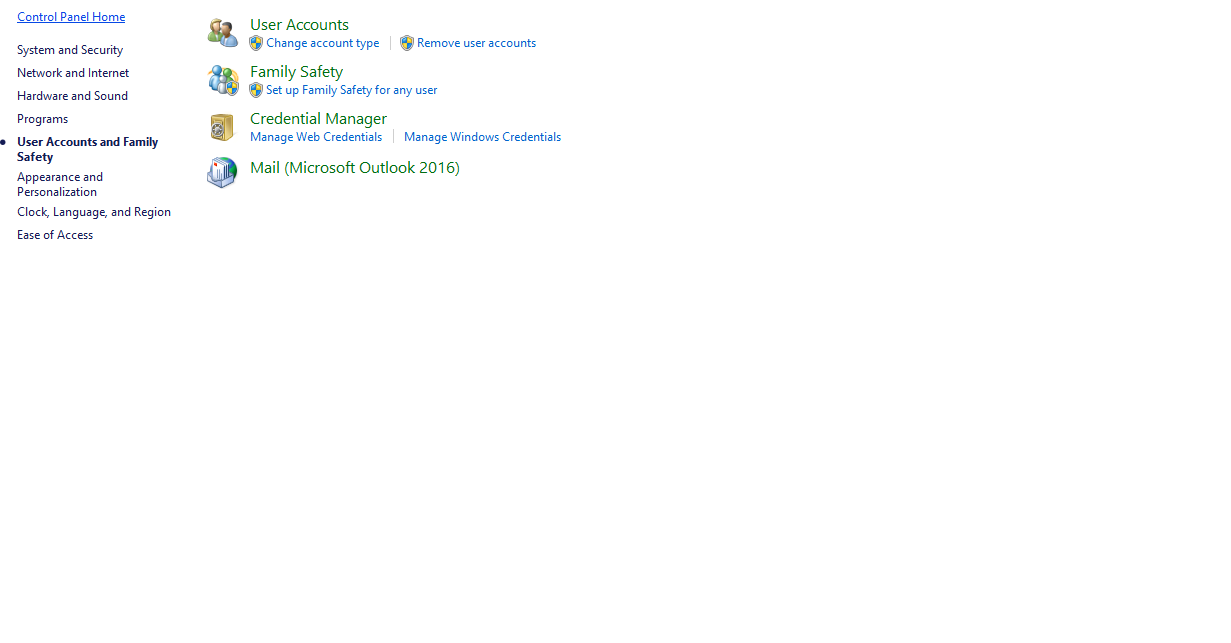 আপ নি যদি আপনার কম্পিউটার থেকে আপনার আউটলুক মেইল লগআউট করতে চান তাহলে প্রথমে আপনার পিসির কন্ট্রোল প্যানেল থেকে User Accounts And Family Safety তে ক্লিক করুন।