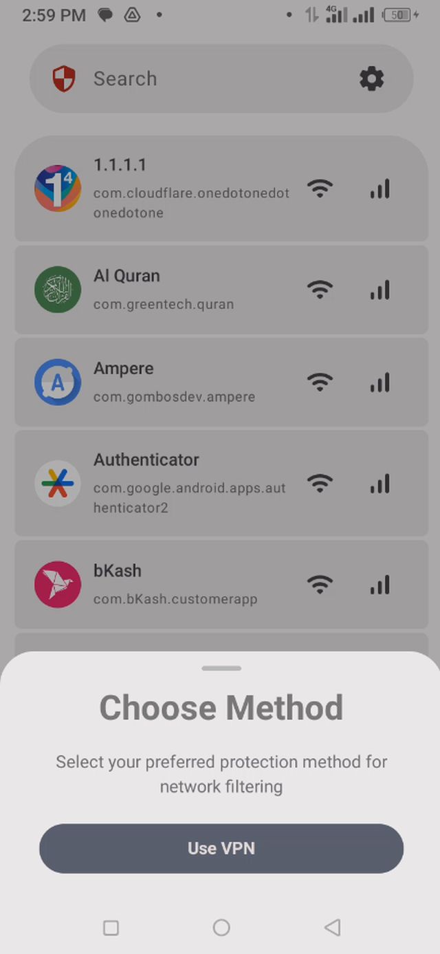 ৪. চতুর্থ ধাপ: নির্দিষ্ট কোনো অ্যাপের ইন্টারনেট সংযোগ বন্ধ বা চালু করতে অ্যাপের ভেতরের 'অ্যাপ লিস্ট' বা 'নেটওয়ার্ক কন্ট্রোল' সেকশনে যান এবং সেখান থেকে ওয়াইফাই ও মোবাইল ডাটার অ্যাক্সেস কাস্টমাইজ করুন।