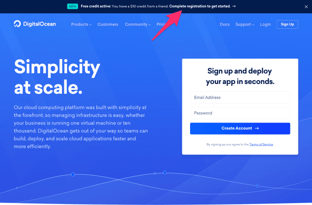 আপনার যদি Digital Ocean কোন একাউন্ট না থাকে তাহলে এখনি ফ্রি ২০০ ডলার পেতে এই লিংকে ক্লিক করুন এবং অফিসিয়াল সাইটে গিয়ে নির্দেশিত লিংকে ক্লিক করুন।