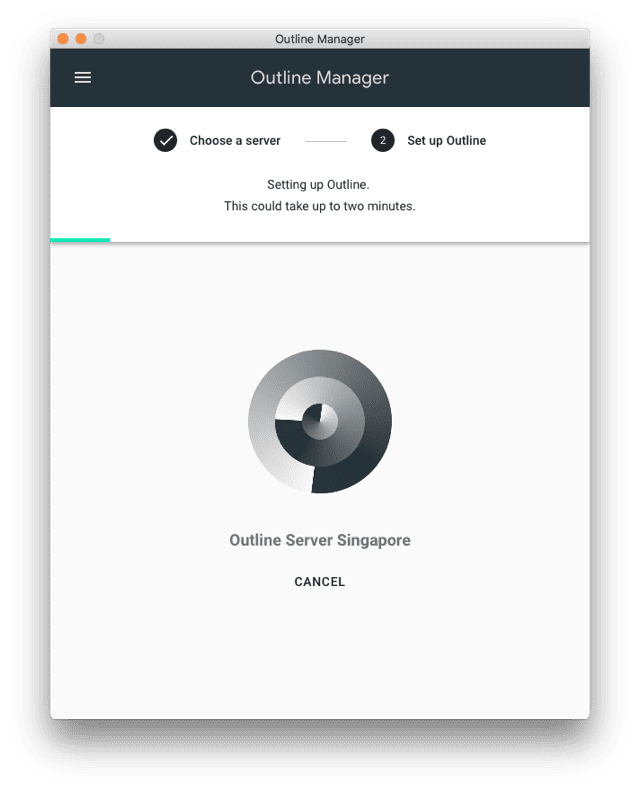 VPN সার্ভার সিলেক্ট করার পর "Set Up Outline" ক্লিক করুন। সেট আপ হতে ২ মিনিট বা তার কিছু সময় বেশি লাগতে পারে কিন্তু আপনি নিশ্চিত থাকতে পারেন এটা খুব দ্রুতই হবে।