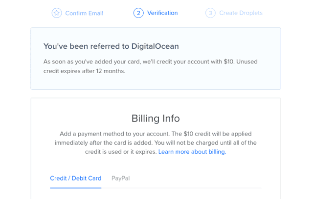 Digital Ocean ব্যবহার করতে প্রতিমাসে কমপক্ষে ৫ ডলার গুনতে হয়। কিন্তু রেফারেলের মাধ্যমে ১০ ডলার পেয়ে যাবেন ২ মাসের জন্য। যার মাধ্যমে দুইমাস আপনি সম্পূর্ণ ফ্রি ব্যবহার করতে পারবেন।