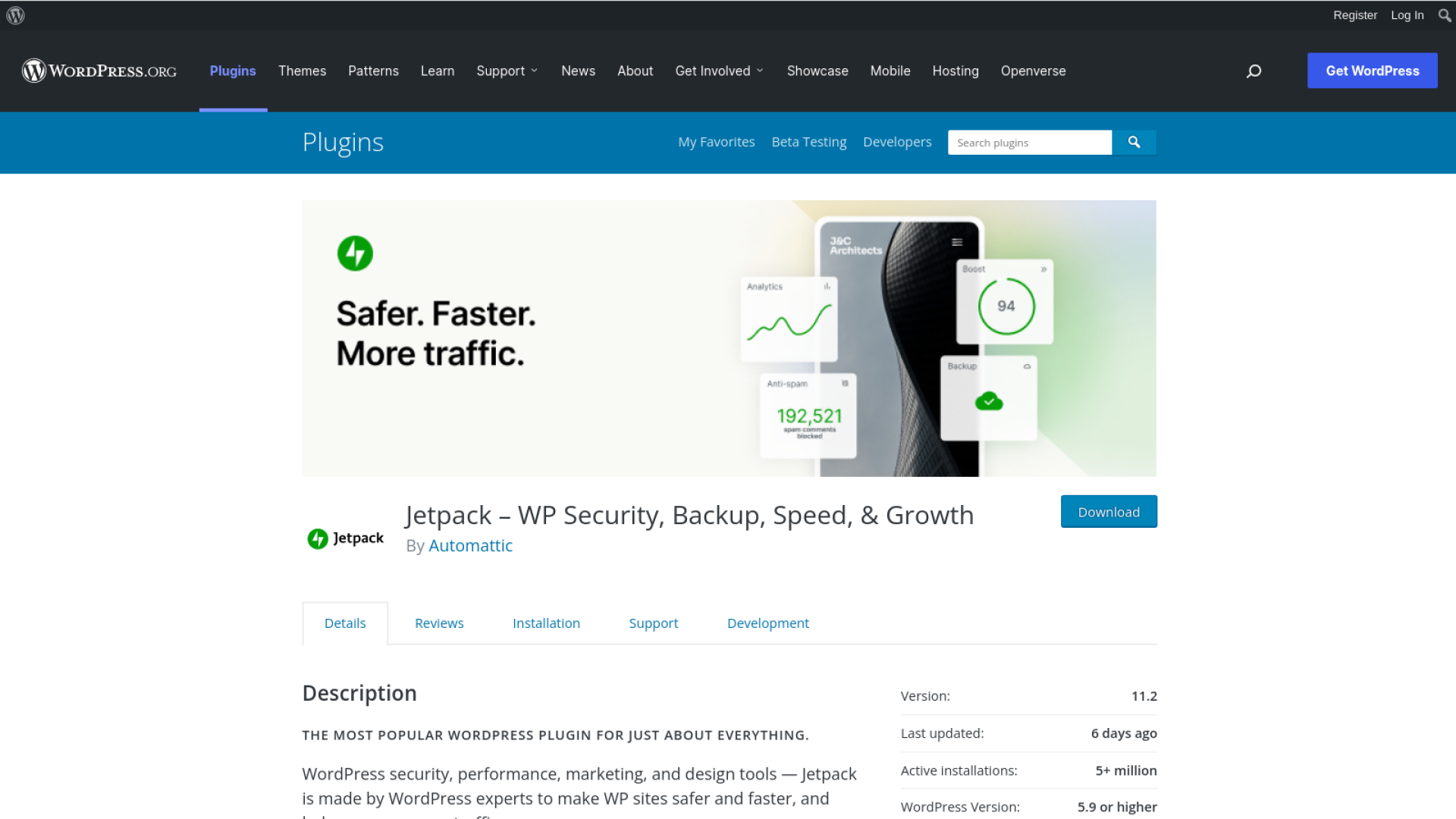 অধিকাংশ ওয়ার্ডপ্রেস ইউজারদের কাছে Jetpack থাকে সিকিউরিটি ফিচার হিসেবে, কিন্তু এটা শুধুমাত্র সিকিউরিটি ফিচার এর জন্য নয়। অটোমেটিক ভাবে কার্যকরী Jetpack ঠিকঠাক পরিসংখ্যান, থিম কাস্টমাইজেশন এবং সেই সাথে একটি SEO টুল অফার করে থাকে। এটিতে সিকিউরিটি ফিচার অন্তর্ভুক্ত রয়েছে যা স্প্যাম ফিল্টার এবং Brute Force Attack গুলো থেকে ওয়েবসাইটকে প্রটেকশন দিয়ে থাকে।