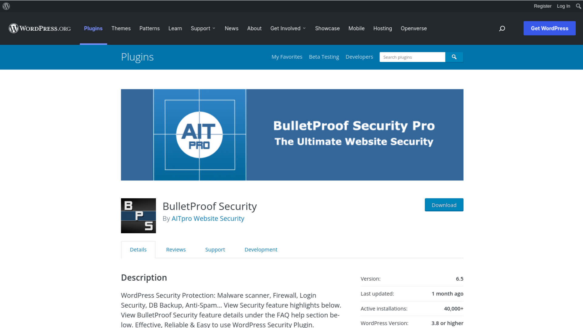 BulletProof Security হল এমন একটি প্লাগইন যা মূলত ওয়েবসাইট সিকিউর করার ব্যাপারে নিশ্চয়তা প্রদান করে। এটি সম্পূর্ণ বিনামূল্যের একটি প্লাটফর্ম বা ৬৯.৯৫ ডলারে সারাজীবনের প্রিমিয়াম সার্ভিসের প্রস্তাব দিয়ে থাকে। তবে বিনামূল্যের ভার্সন এবং প্রিমিয়াম ভার্সন, দুটোই অধিকাংশ ওয়েবসাইট সিকিউর করার জন্য দুর্দান্ত কার্যকারিতা প্রদর্শন করে থাকে। BulletProof Security প্লাগইন টির সিম্পল নান্দনিক রূপ দেখে এটিকে বিচার করলে ভুল হবে। আসলে এটি একটি ডিসেন্ট প্লাগইন যা একটি ফায়ারওয়াল, ব্যাক-আপ এবং নরমাল ম্যালওয়্যার স্ক্যানিং অফার করে থাকে।