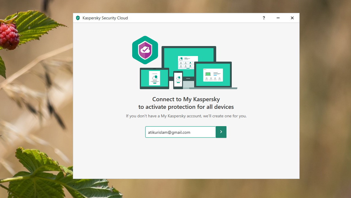 Kaspersky free এর বিপরীতে Kaspersky Security Cloud ব্যবহার করার জন্য আপনার অবশ্যই একটি একাউন্ট রেজিস্ট্রেশন করার প্রয়োজন পড়বে। আপনার যদি Kaspersky এর অ্যাকাউন্ট না থেকে থাকে, তাহলে আপনাকে একটি একাউন্ট তৈরি করে নিতে হবে। নতুন একটি Account তৈরি করার জন্য আপনি এখানে প্রথমে একটি ইমেইল দেওয়ার অপশন পাবেন এবং এখানে আপনি আপনার ইমেইল দিয়ে দিবেন।