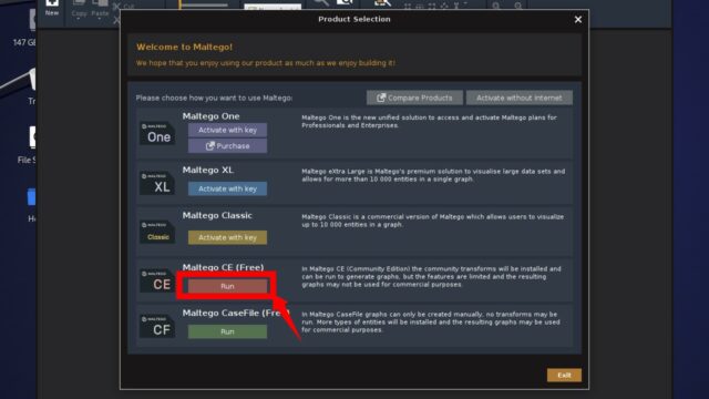 দেখতে পাচ্ছেন তারা কিনতে বলতাছে কিন্তু আমরা ফ্রি টা ব্যবহার করবো তাই maltego CE (free) run করবো।