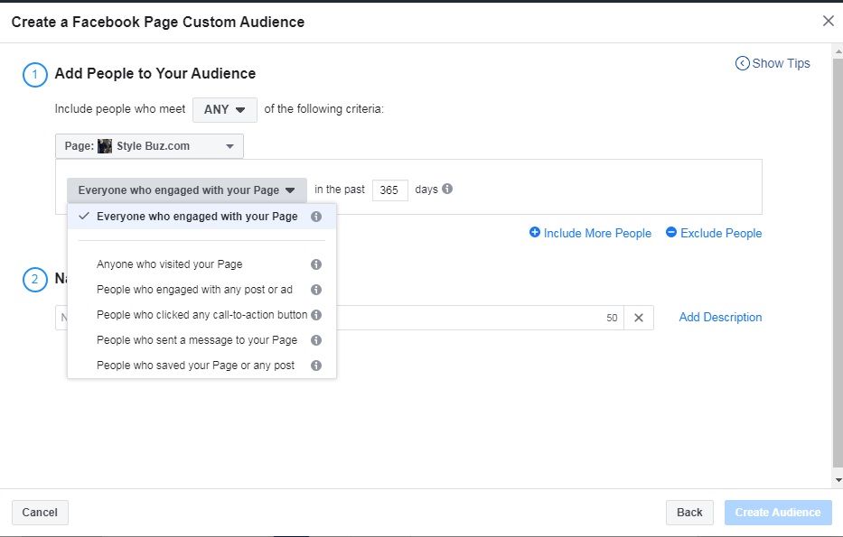 আপনার কাছে সে সব ডাটা খুব ভালমানের এবং প্রাসঙ্গিক মনে হতে পারে সেইসব ডাটা সোর্স হিসেবে নিয়ে কাস্টম অডিয়ান্স তৈরি করতে পারবেন। আবার যে সব ডাটা আপনার কাছে অপ্রয়োজনীয় এবং অপ্রাসঙ্গিক মনে হতে পারে তা বর্জন করতে পারবেন। একটা উদাহরণ দিলে বিষয়টা পরিষ্কার হবে। ধরুণ আপনার পেজের ডাটা গুলো খুব ভালমানের। আপনি চাইছেন যারা গত ১২০ দিনে আপনার পেজে এঙ্গেজমেন্টে ছিল তাদের কে অন্তর্ভুক্ত করবেন আবার পাশাপাশি যারা গত ৩০ দিনে শুধু মেসেস সেন্ড করেছে তাদের কে বাদ দিবেন, এই কাজটি কাস্টম অডিয়ান্স এর মাধ্যমে সহজেই করতে পারবেন। একটা পেজের ক্ষেত্রে কি কি কাজ করতে পারবেন আবার কি কি কাজ করতে পারবেন না তা নিচে দেখান হল।