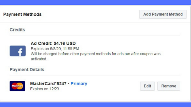 ফেসবুকের এড কুপনের অফার পার্সোনাল প্রফাইলে বা ইমেইলে নোটিফিকেশন আকারে দিয়ে থাকে। তবে সেটা উপভোগ করতে হলে তা রিডিম করতে হয়। এই ক্ষেত্রে সেই ব্যক্তির পার্সোনাল ‘এড অ্যাকাউন্ট’ একটিভ থাকতে হবে এবং একটা প্রাইমারি পেমেন্ট মেথড এড অ্যাকাউন্ট এর সঙ্গে যুক্ত করতে হবে। যেমন – মাস্টার কার্ড, ভিসা কার্ড, আমেরিকান এক্সপ্রেস ইত্যাদি। কুপন টা ঠিকমত রিডিম হয়ে গেলে সেটা দিয়ে ফেসবুক বা ইন্সটাগ্রামের এড বুস্ট করা যাবে এবং তার বিল কুপন দিয়ে প্রদান করা যাবে। ফেসবুক প্রতিদিন এড এর বিল কুপন থেকে কেটে নেয়। তবে কুপন রিডিম করার আগের বিল ডিউ থাকলে তা কুপন দিয়ে পরিশোধ করা যাবে না। সেটা পরিশোধ করতে হবে প্রাইমারি পেমেন্ট মেথড দিয়ে।