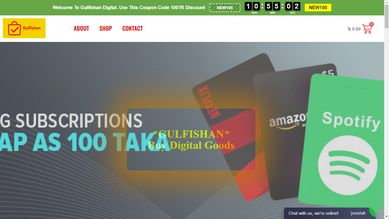 GulfishanBD তে সকল ধরনের ডিজিটাল পণ্য আপনি পেয়ে যাবেন। ভিডিও গেমস থেকে শুরু করে, মুভি, গান, সাবস্ক্রিপ্টশন ভিক্তিক সকল সার্ভিস যেমন নেটফ্লিক্স, স্পটিফাই ইত্যাদি সকল কিছু সুলভ মূলে পেয়ে যাবেন। এছাড়াও এন্টিভাইরাস, সফটওয়্যার ইত্যাদিও থাকছে। আর বর্তমানে আপনি আমাদের সকল সার্ভিসে পাচ্ছেন ৮৫% পর্যন্ত ছাড়! হ্যাঁ আপনি টেকটিউনসের আমার রেফারেন্সে GulfishanBD সাইট থেকে যেকোনো কিছু কিনলেই পাবেন Random ৮৫% পর্যন্ত ছাড়! উইন্ডোজ ১০ প্রফেশনাল কী পাবেন মাত্র ৭০০ টাকায় এবং উইন্ডোজ ১০ Home সিঙ্গেল এডিশন পাবেন মাত্র ৫০০ টাকায়! জ্বী হ্যাঁ! আর উইন্ডোজ ১০ কে পাইরেটেড কপি দিয়ে চালাতে হবে না এখন আপনি মাত্র ৫০০ টাকাতেই লিগ্যাল অরিজিনাল উইন্ডোজ ভার্সন চালাতে পারবেন!