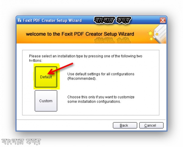 I agree তে ক্লিক করার পর এই উইন্ডোটি আসবে এবং Default তে ক্লিক করতে হবে ।
