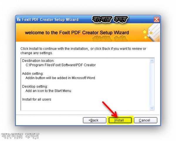 আর এই সফটওয়্যারটি উইন্ডোজ অপারেটিং সিস্টমের ৩২ বিট এবং ৬৪ বিট দুইটি ভার্সনেই দেওয়া আছে । যারা যারা Foxit PDF Creator ডাউনলোড করেছেন তারা কীভাবে ইনস্টল করবেন এবং কীভাবে অ্যাকক্টিভ করতে হবে তা নীচের চিত্রের সাহায্যে বর্ণনা করা হলো।