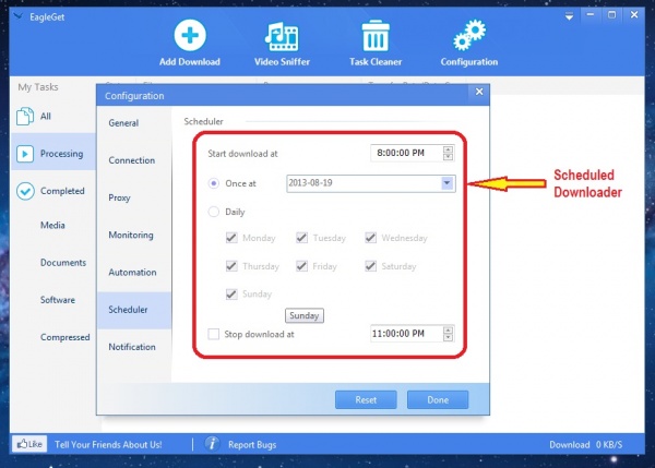 আরো রয়েছে Schedule Downloader যার মাধ্যমে একটা নির্দিষ্ট করে সময়, তারিখ, দিন ঠিক করে দিতে পারেন যখন automatic ডাউনলোড শুরু হবে এবং automatic বন্ধ হবে।