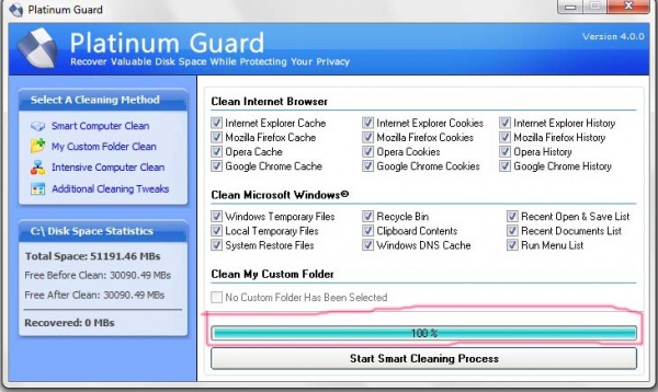 ক্লিক করুন, এবার দেখবেন সবগুলো ফাইলকে ক্লিন করা শুরু হয়ে গেছে এবং ১০০% পার্সেনট হওয়া পর্যন্ত অপেক্ষা করুন, নিচে দেখুন............